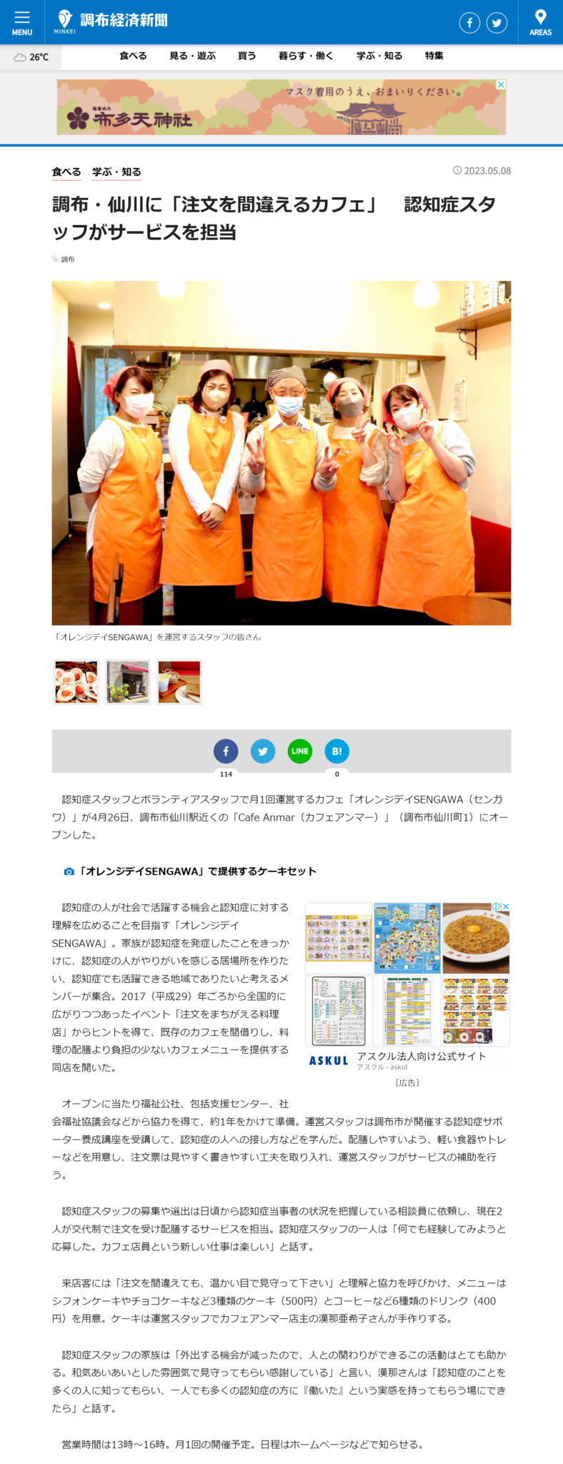 ◎ 2023年5月「調布経済新聞」と、Yahoo!地域ニュースに掲載されました