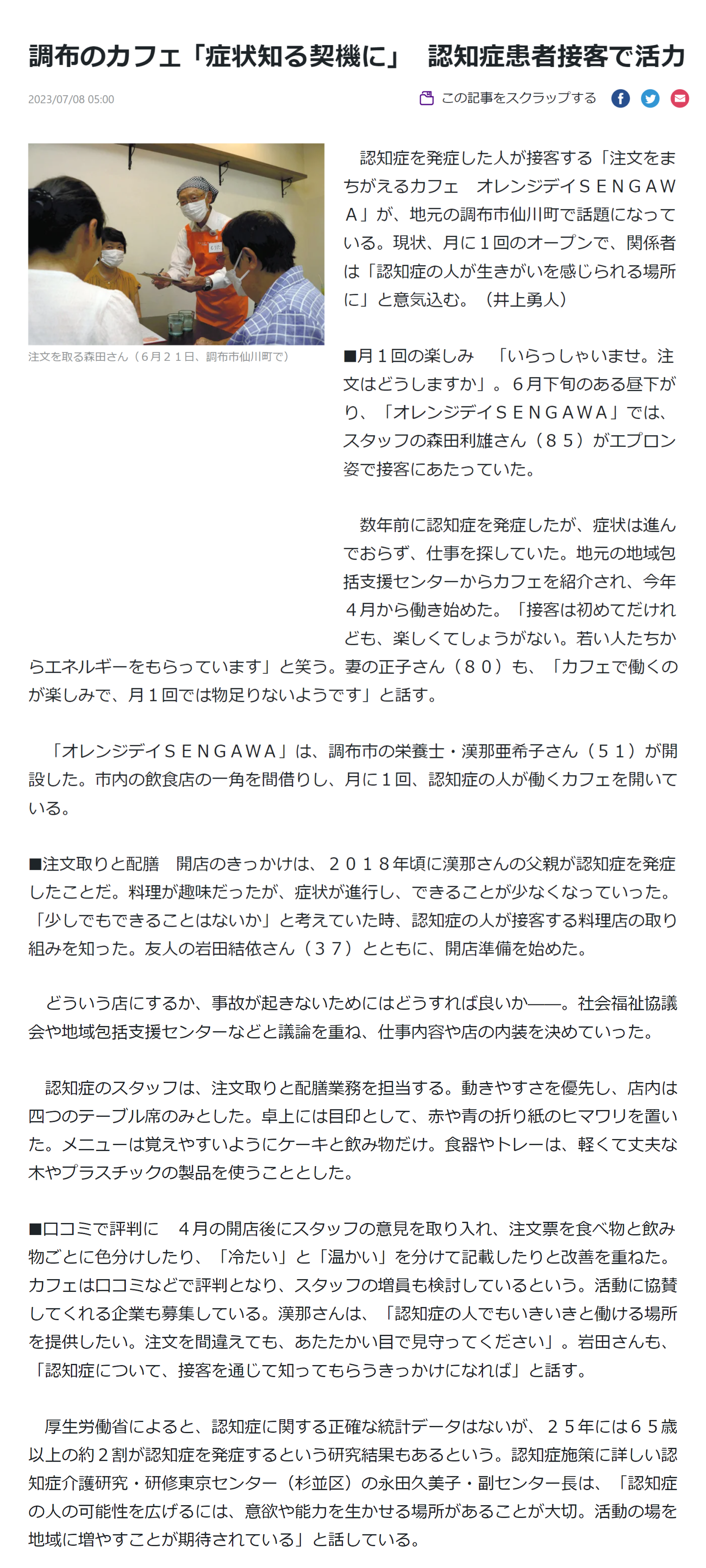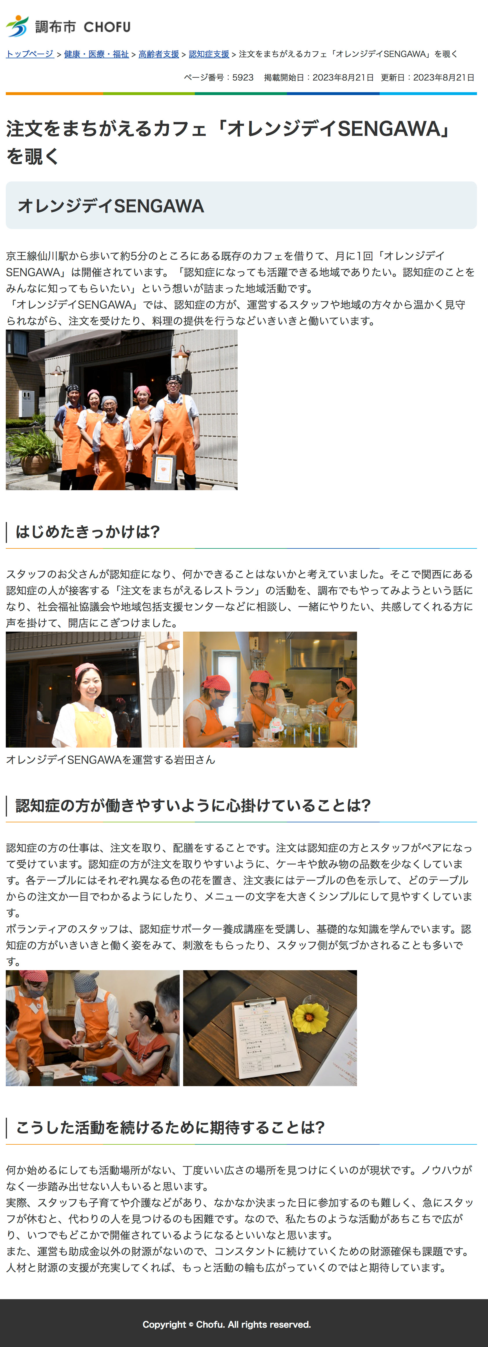 ◎ 2023年8月21日 調布市のホームページに取材記事が掲載されました
