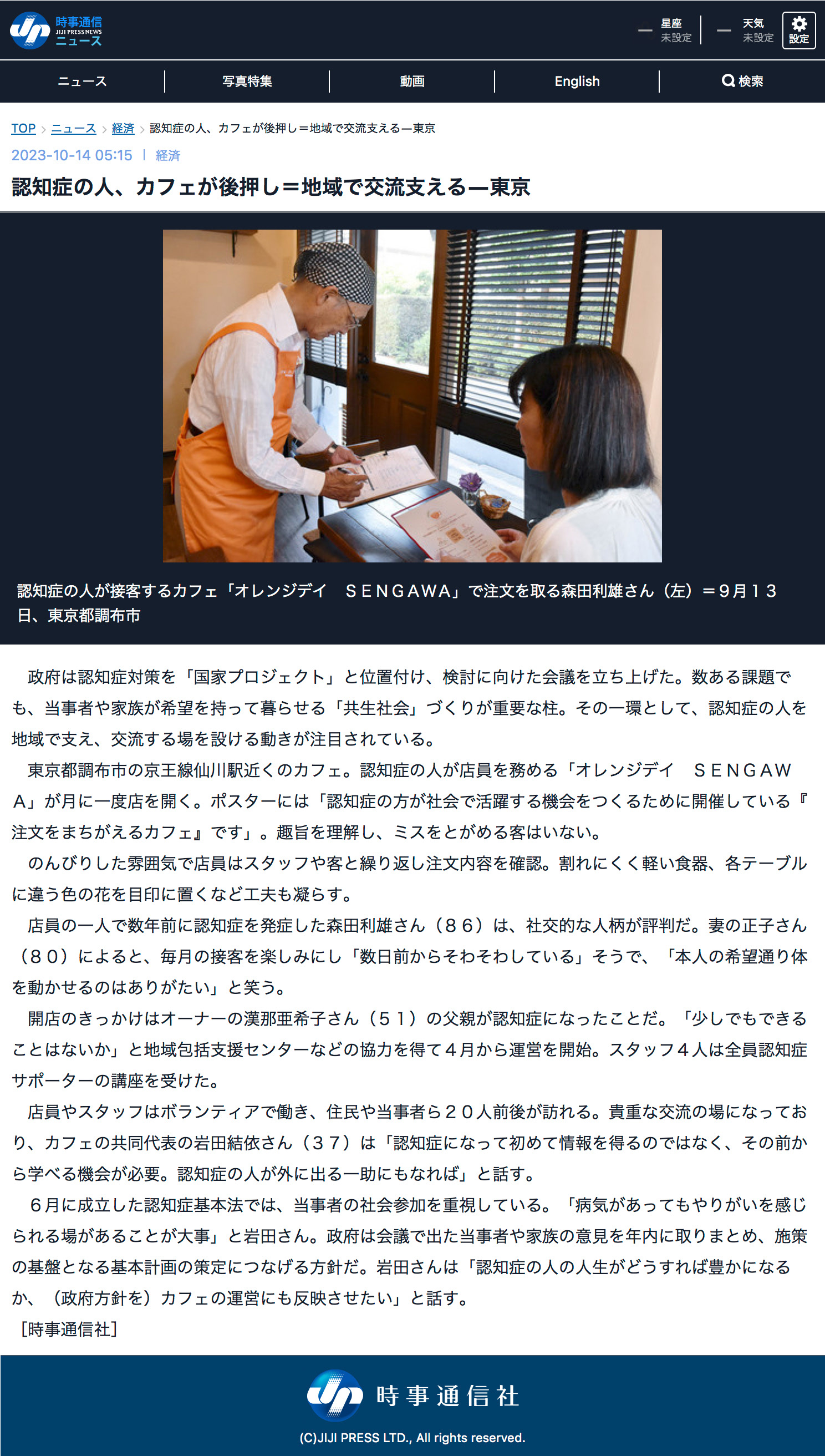 ◎ 2023年10月14日 時事通信ニュースに掲載されました